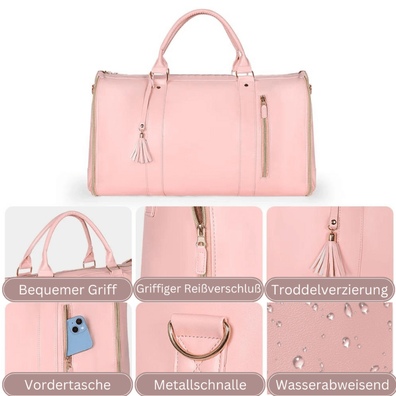 Die Tasche ist sehr funktional und gut durchdacht. Ich kann sowohl meinen Anzug als auch meine Freizeitsachen problemlos unterbringen. Besonders gefällt mir, dass sie sich so klein zusammenfalten lässt, wenn sie nicht gebraucht wird. Top Produkt!